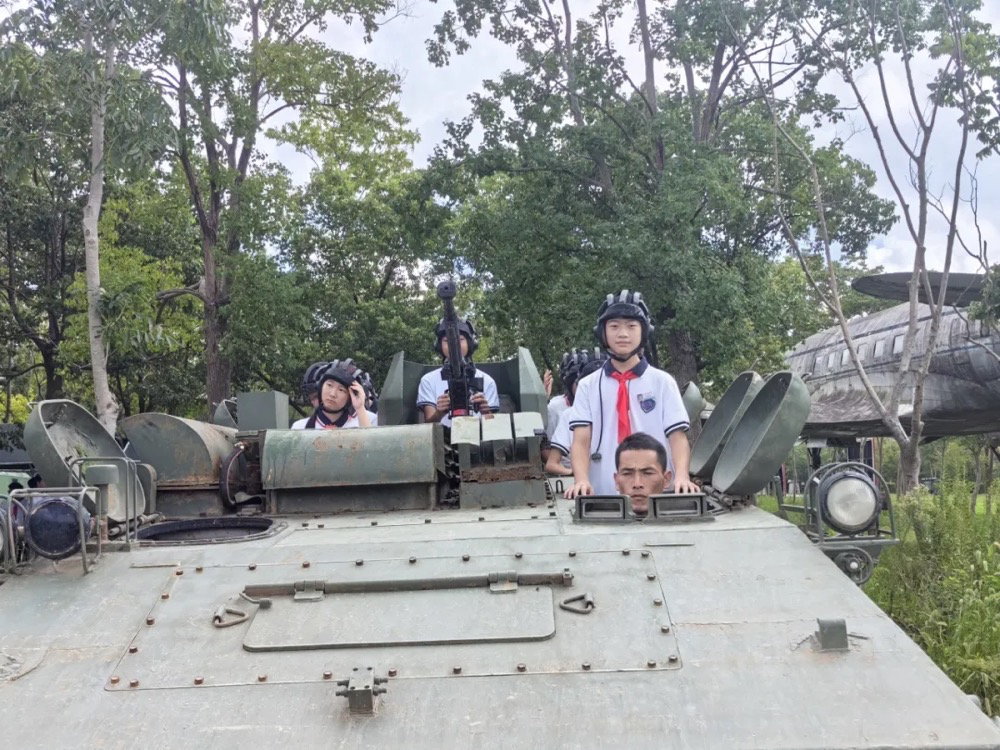 王店镇中学头戴坦克帽体验装甲战车