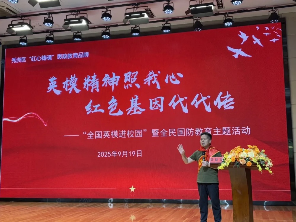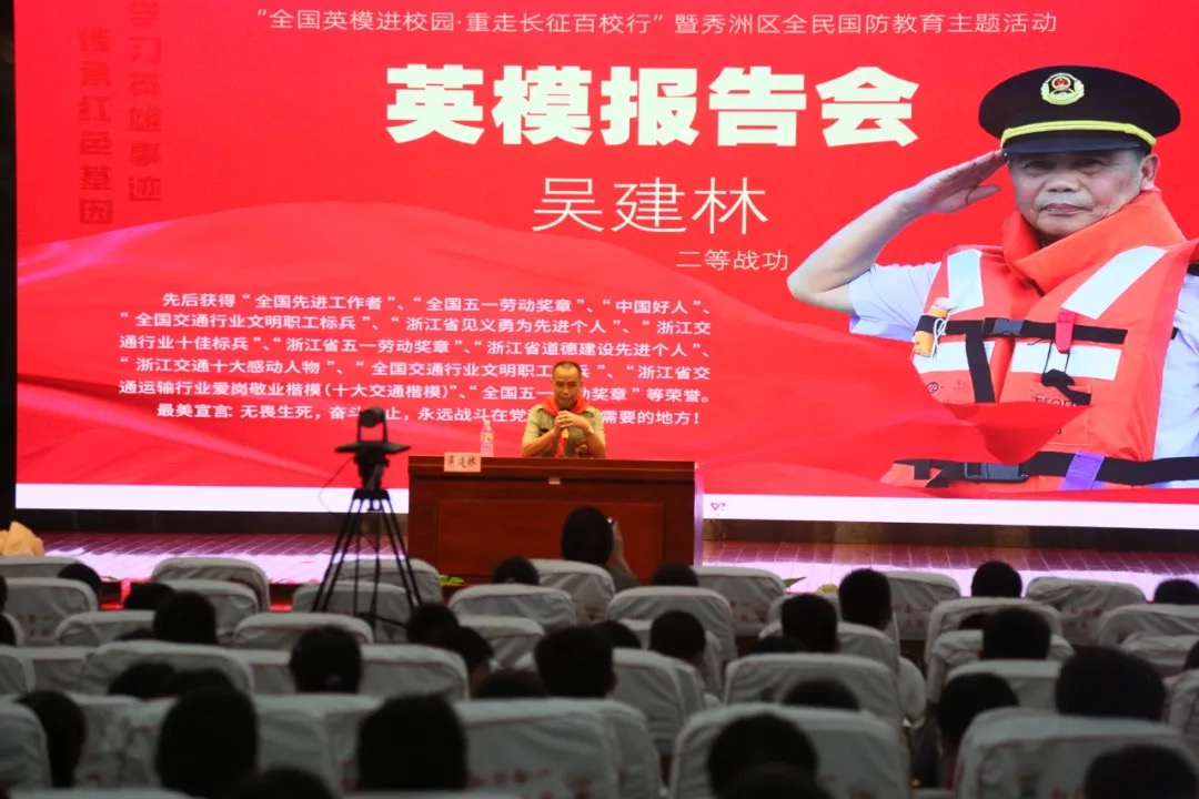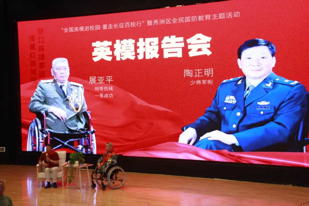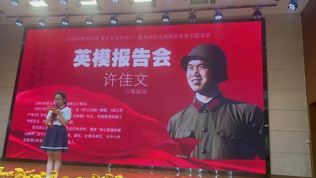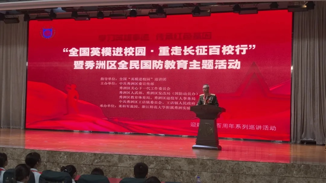 下午2:30,秀洲区10所中小学同步开展“全国英模进校园”巡讲活动,各校结合自身特色,与英模共同打造了一场场感人至深、激励人心的国防教育课。