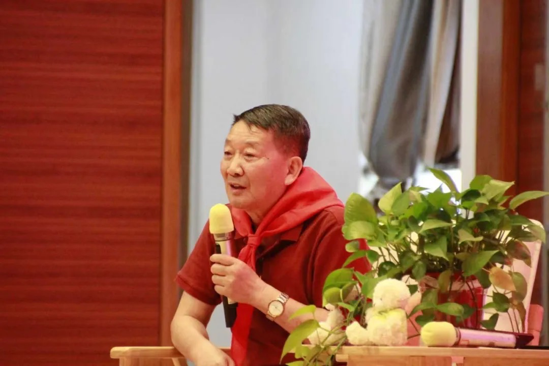 陶正明少将从红领巾讲起,讲述红领巾的由来。也给同学们讲述边境作战时的生死考验,他把展亚平爷爷的英勇事迹分享给大家。
