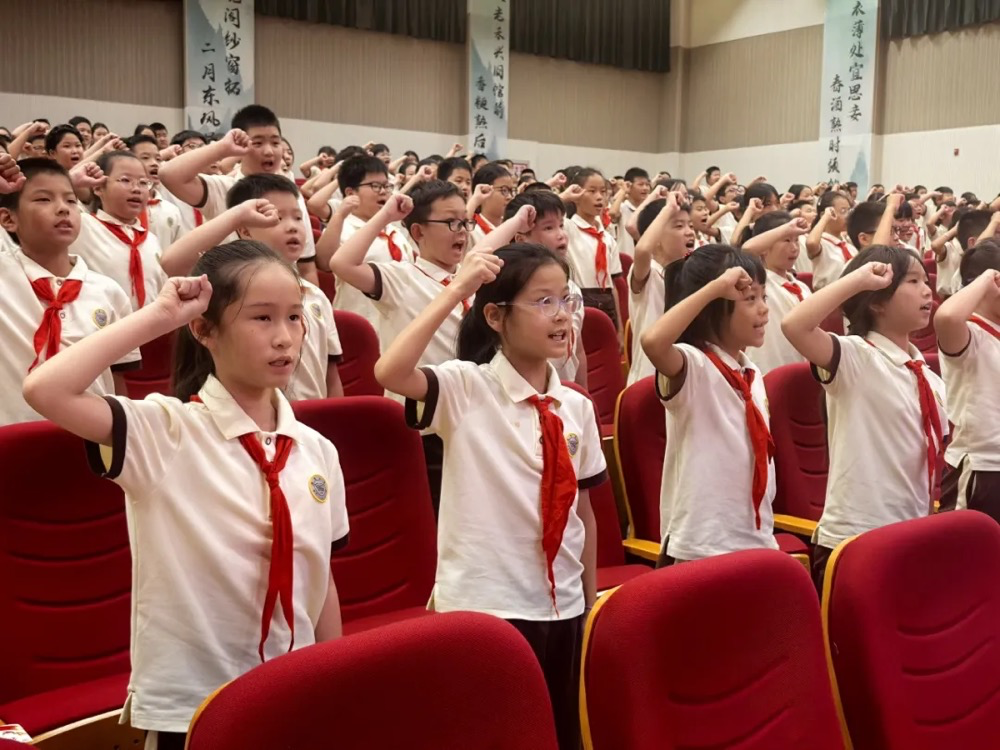 接过英雄的旗帜,传承红色的基因,吾辈少年,自强不息!同学们用歌声、用宣誓表达志向,传递力量,必将英雄精神落实到自己的学习生活中,争做新时代好少年。