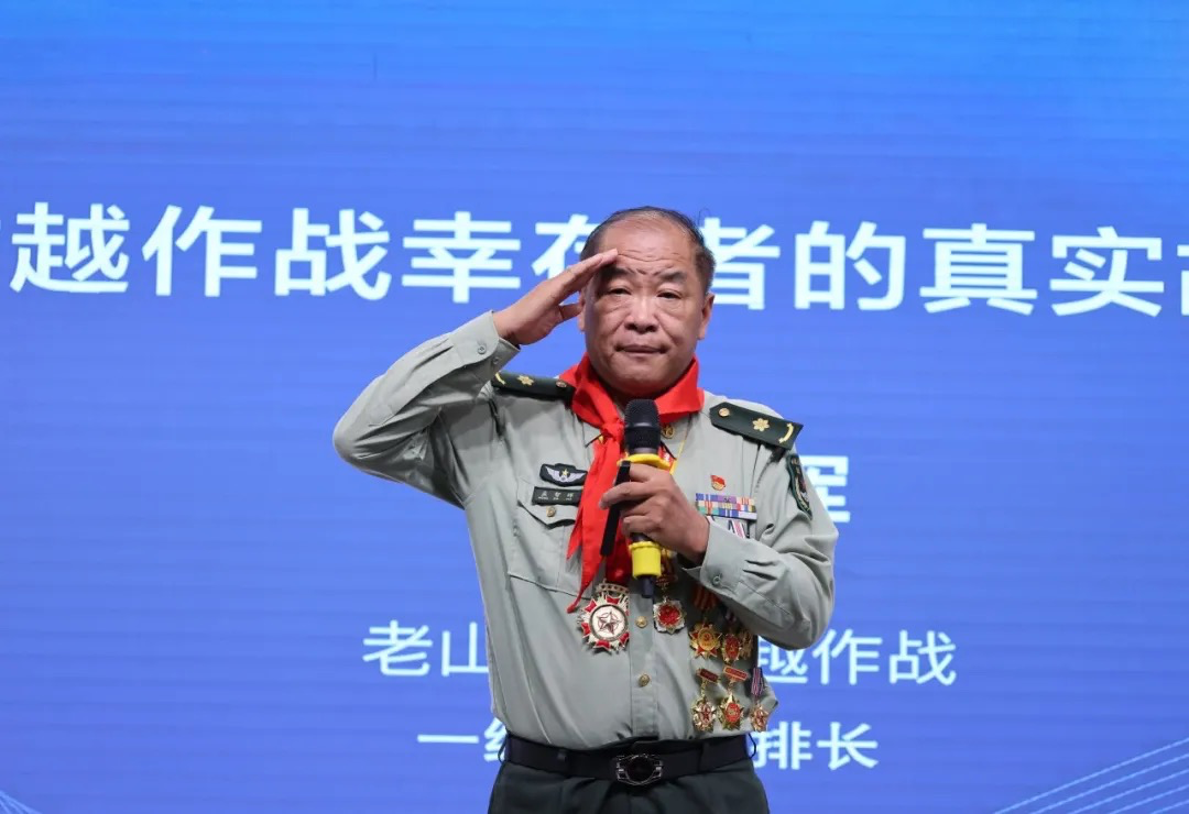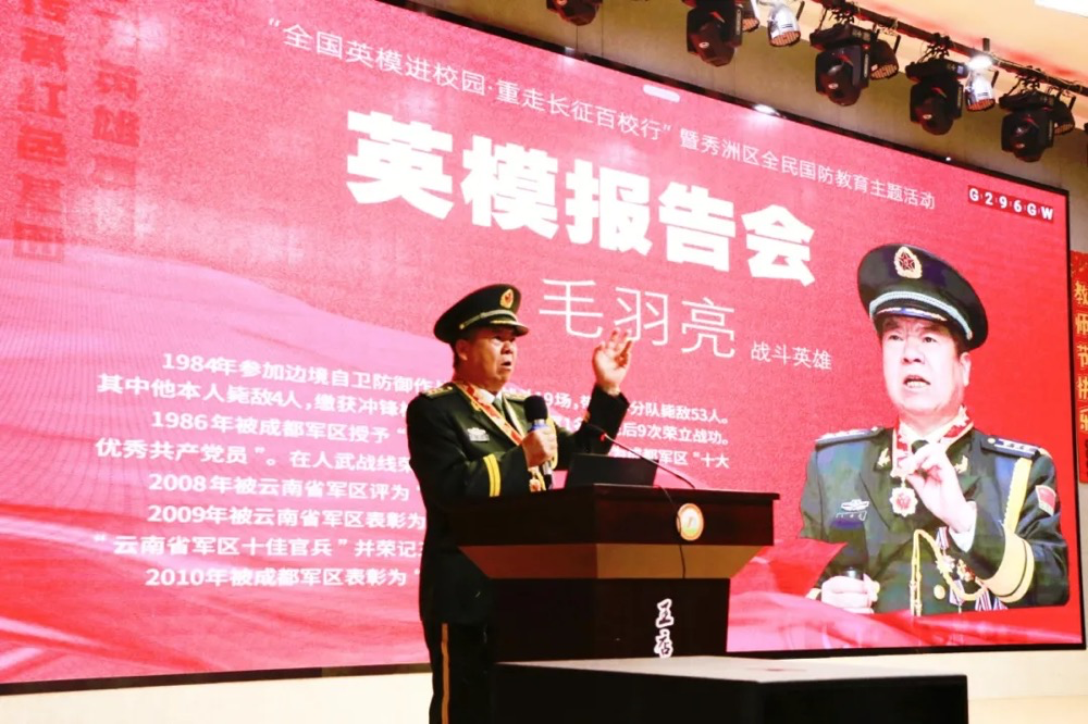 在掌声中,毛羽亮登台演讲。他首先回顾了对越自卫反击战的艰苦卓绝:“我们很多战友平均年龄不超过33岁,就永远长眠在了南疆。”通过具体数据,他讲述了战士们以劣势装备与敌人殊死搏斗的历史,并指出:“同学们能享受和平安宁的生活,是无数先烈用鲜血换来的。”他呼吁大家珍惜幸福生活,努力读书,为民族复兴贡献力量。
