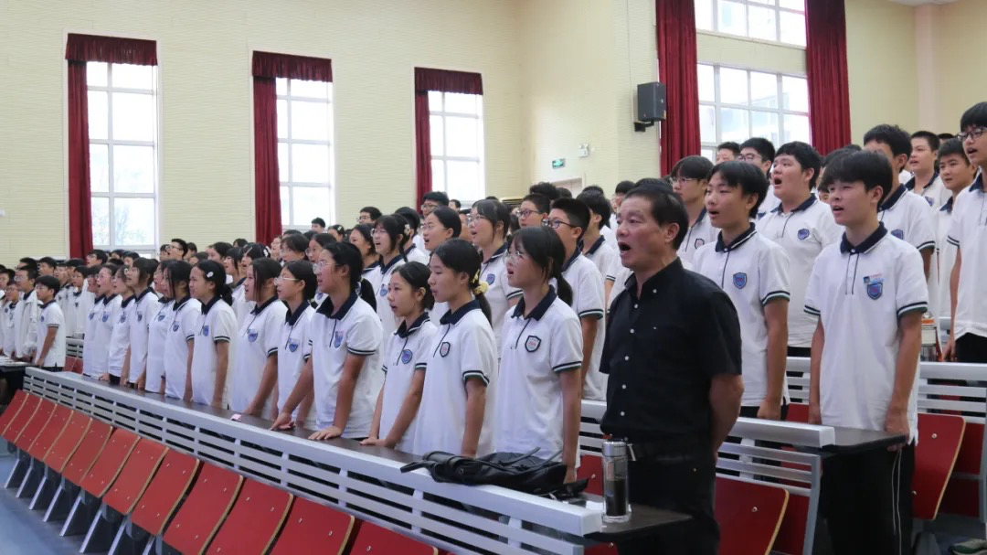 致敬环节后,全体八年级学生起立,齐声高唱《强军战歌》。激昂嘹亮的歌声响彻会场,“听党指挥、能打胜仗、作风优良”的强军目标通过青春的旋律澎湃传递,展现了少年们赓续红色血脉、矢志报效国家的家国情怀。