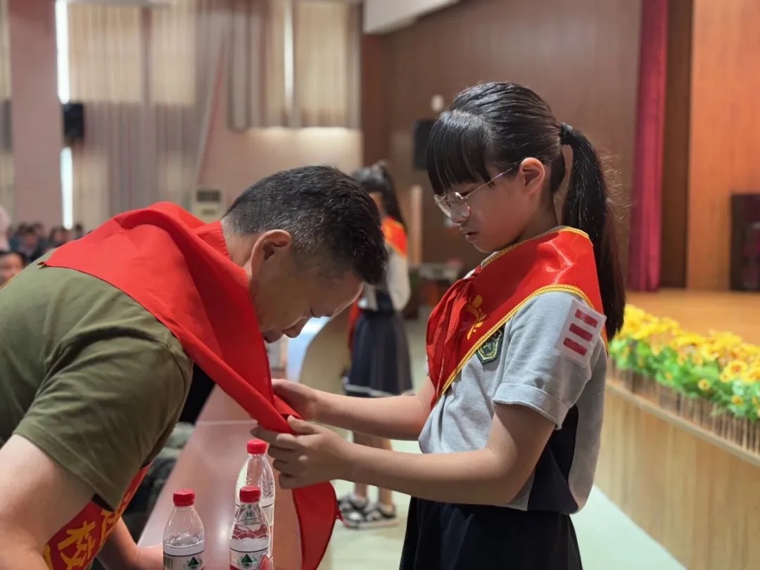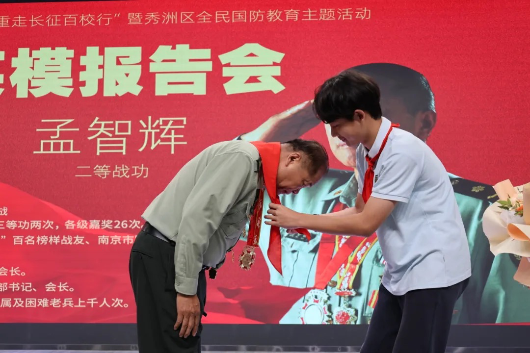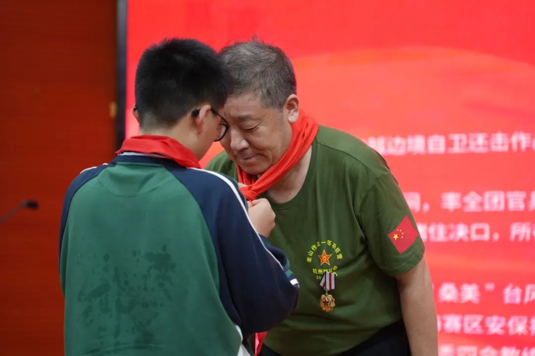 学生代表为英模佩戴红领巾,那一刻,英雄与少年的手紧紧相握,信仰与传承在此刻交汇。
