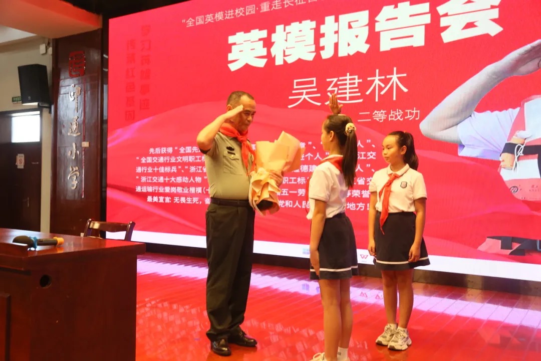 二等战斗功臣,全国先进工作者、全国五一劳动奖章、中国好人吴建林同志走进印通小学,为小学生带来主题讲座。