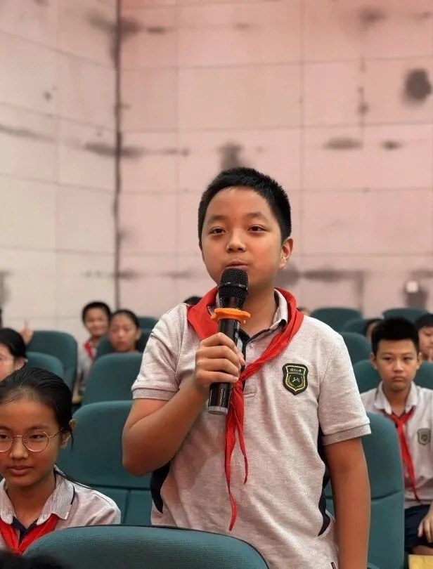 钱富生同志面带微笑,以平和而坚定的语气一一回应,用最朴实的话语诠释勇敢的真谛。在问答之间,革命精神与青春心灵热烈碰撞,红色基因在这场跨越时代的对话中悄然传承。