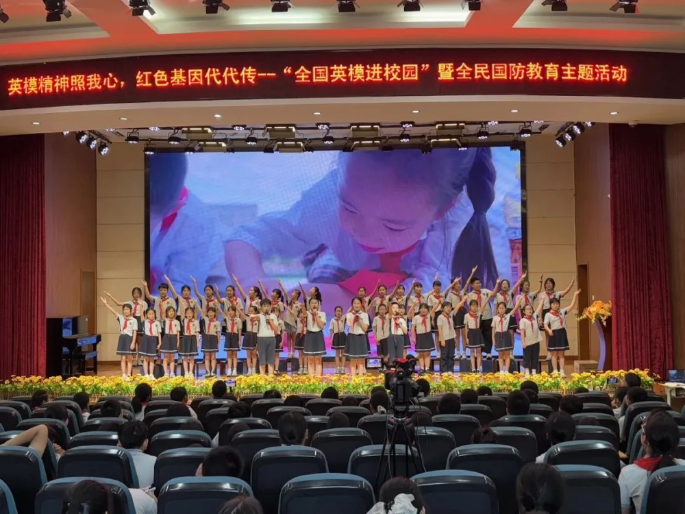 嘉兴市秀洲区闻川小学在报告厅隆重举行“英模精神照我心,红色基因代代传”——闻川小学“全国英模进校园”暨全民国防教育主题活动。