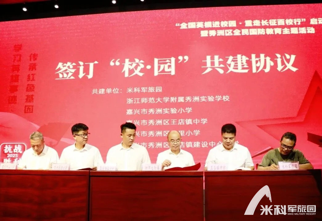 米科军旅园与秀洲区10所学校签订“校·园”共建协议,推动国防教育走进课堂、融入日常。